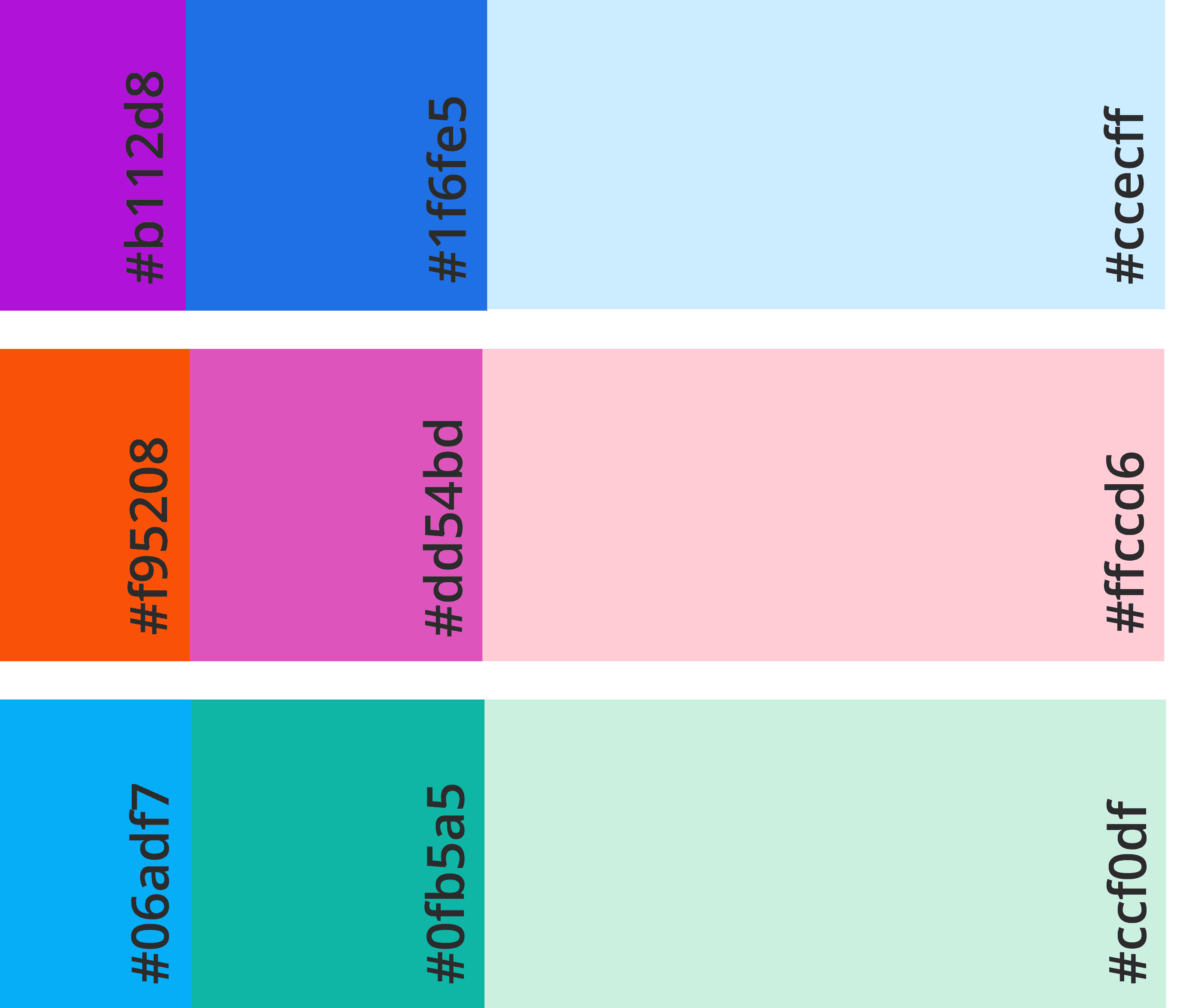 The color palettes refer back to the flavours but also the individual name of the soda. So the flavour azure is blue and purple, coral is pink and orange and seafoam is green and light blue.