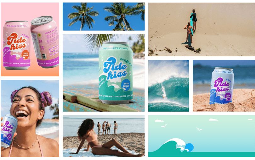 From this, I defined an initial direction: a playful, high-energy identity with strong flavour individuality and a clear connection to coastal and refreshment-related imagery.
